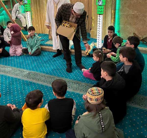 Esenbahçe Camiinde aileleriyle teravih namazına gelen çocuklar namazdan sonra ikramlarını aldılar..