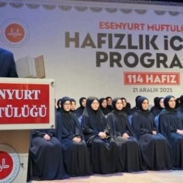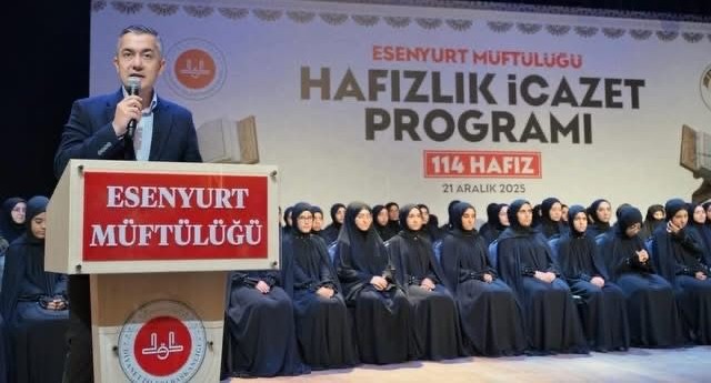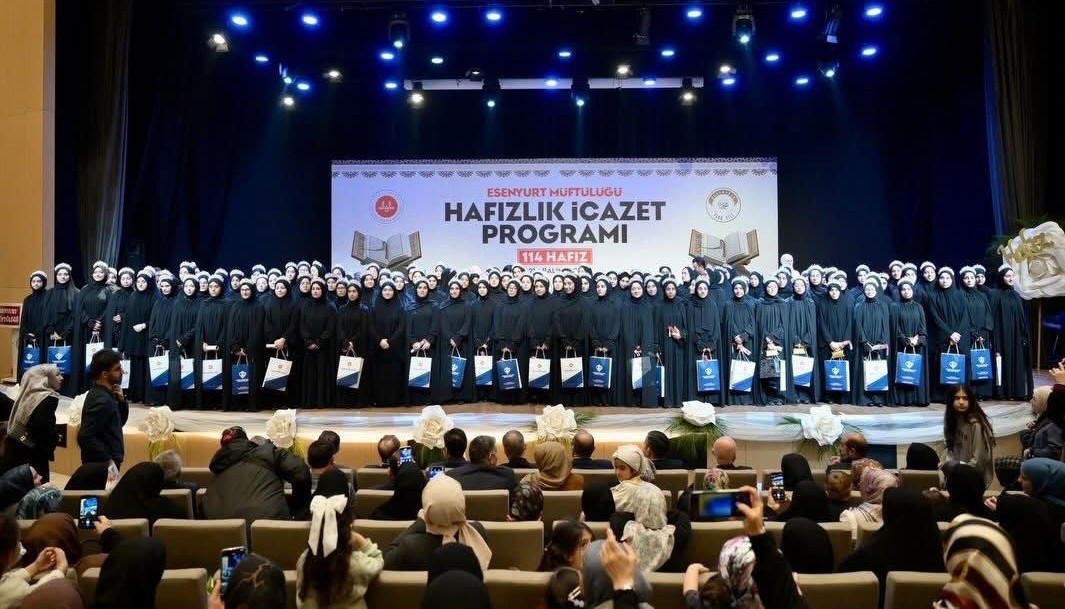 Esenyurt İlçe Müftülüğüne bağlı beş Kız Kur’an Kursu'nda hafızlık eğitimlerini tamamlayan 114 kız öğrenci için "Hafızlık İcazet Merasimi" düzenlendi.