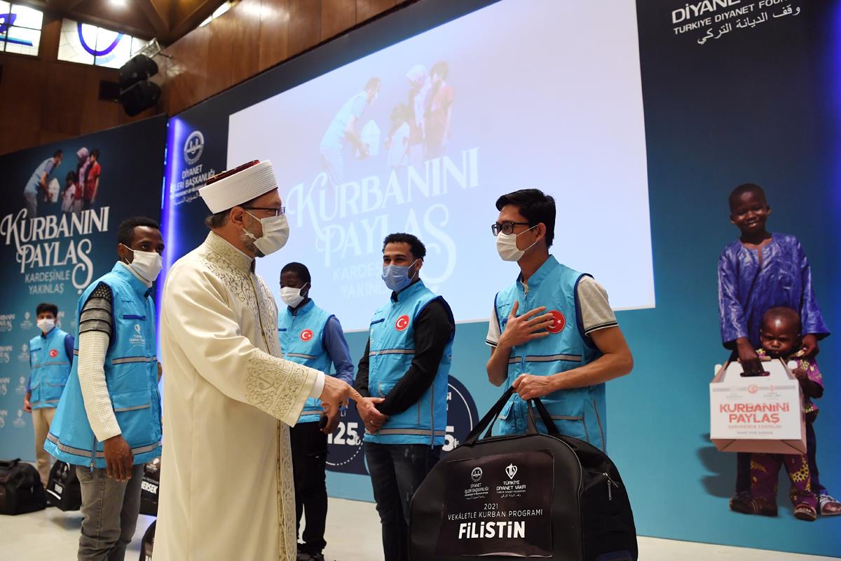 Diyanet İşleri Başkanlığının ve TDV’nin özverili insan kaynağıyla sahip olduğu hizmet potansiyelinin ve bu konuda taşıdığı hassasiyetin, TDV’ye emanet edilen kurban vekâletlerinde her yıl düzenli bir artışın yaşanmasına vesile olduğunun altını çizen Başkan Erbaş, şunları söyledi: “Milletimizin destek ve teveccühüyle geçen yıl aldığımız bağış rakamlarının üzerine çıkarak 20 milyondan fazla ihtiyaç sahibine Türkiye’nin iyilik elinin ulaştırılması hedeflenmektedir. Vekâlet yoluyla kurban çalışmalarımız kapsamında Türkiye’de 81 il 922 ilçede, yurt dışında ise 100 civarında ülke 280 bölgede mazlum ve muhtaç kardeşlerimize halkımızın yardım elini ulaştıracağız inşallah.”