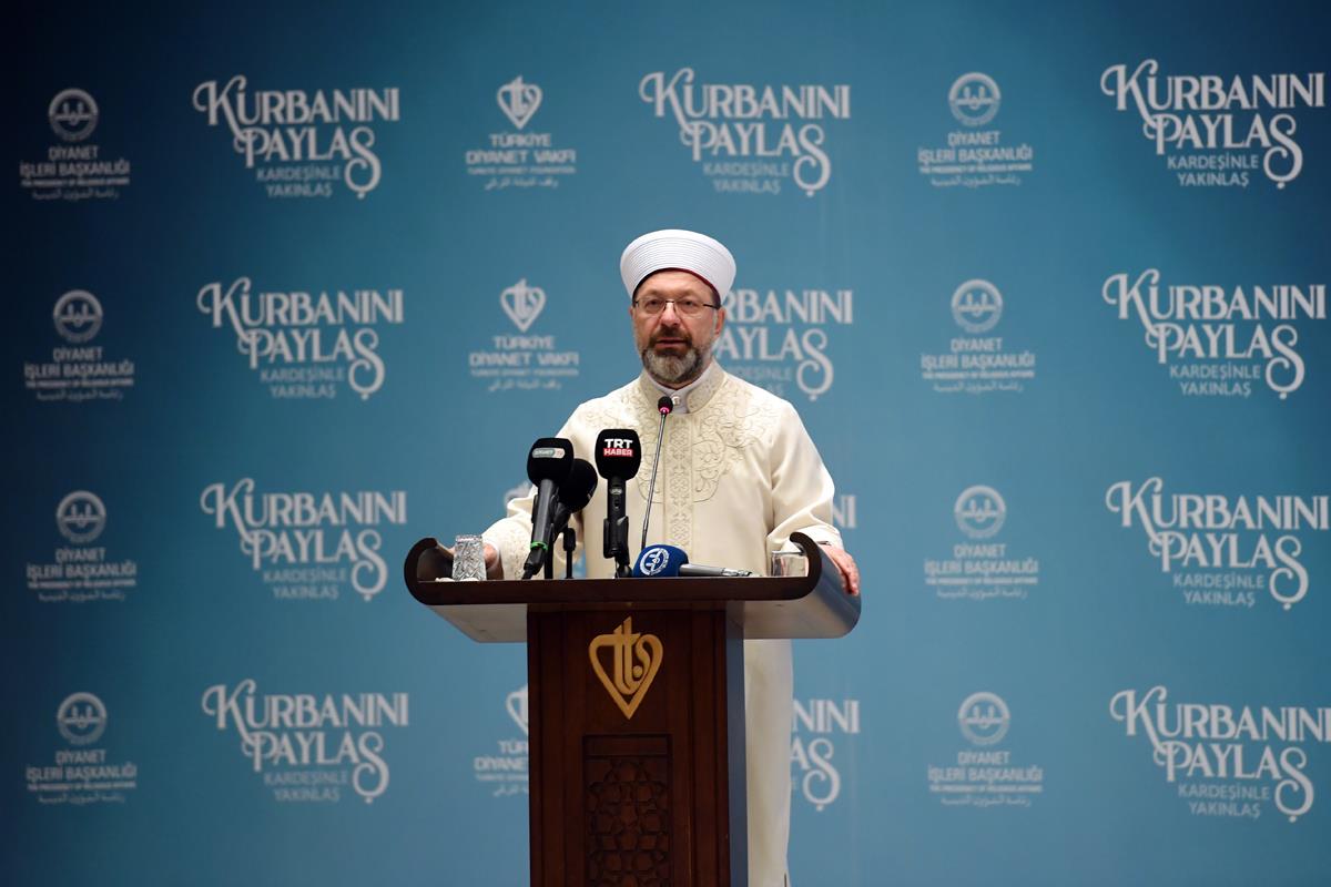 TDV’nin, kurban vekâletlerini, İslam dininin esaslarına uygun olarak büyük bir hassasiyetle yerine getirdiğini kaydeden Başkan Erbaş, konuşmasına şöyle devam etti: “Son derece şeffaf bir şekilde sürdürülen organizasyonda kurban kesimleri, vekâlet sahiplerinin isimleri tek tek okunarak bizzat Diyanet İşleri Başkanlığımızda görev yapan hocalarımız ve vakfımızın gönüllüleri nezaretinde yapılmaktadır. Geçtiğimiz yıl Türkiye Diyanet Vakfına emanet edilen 557 bin 311 hisse kurban; yurt içinde il ve ilçeler olmak üzere 430 kesim noktasında; yurt dışında ise 74 ülkenin 308 bölgesinde kesilerek ihtiyaç sahiplerine ulaştırılmıştır. Bu sene de Vekâletle Kurban Kesim Organizasyonu kapsamında ülkemizdeki ihtiyaç sahiplerine ve dünyadaki mazlum, mağdur ve muhtaçlara milletimizin iyilik eli büyük bir titizlikle ulaştırılacaktır inşallah. Daha çok mazlum ve muhtaç kardeşimizin yüzünü güldürmek ve onların bayram sevincine katkı sunmak için “Kurbanını Paylaş, Kardeşinle Yakınlaş” temasıyla büyük bir heyecan ve özveri ile gayret edilecektir.”